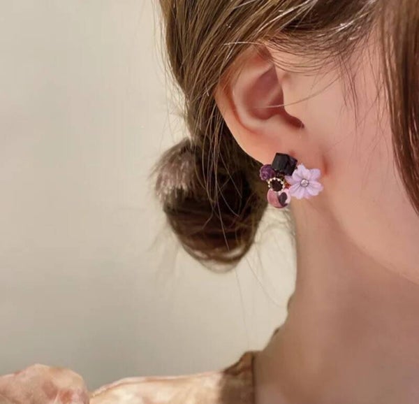 784 Aretes flor y cristales lila