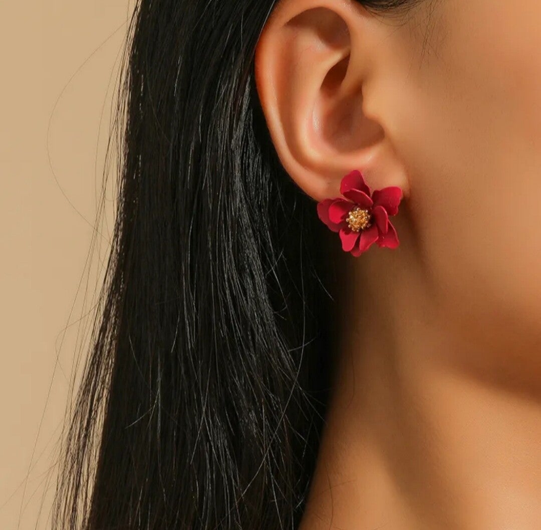210 Aretes Flor Roja Doble Pétalo