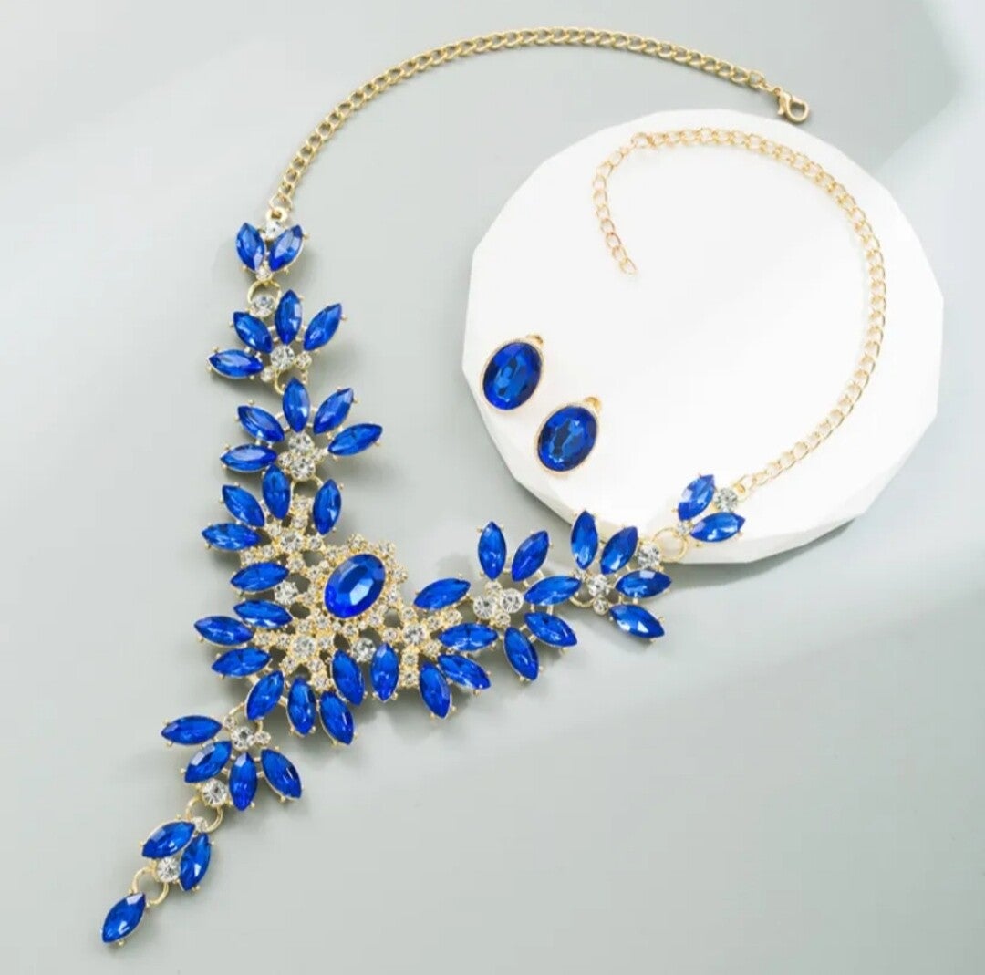 265 Set Collar Aretes Piedra Azul