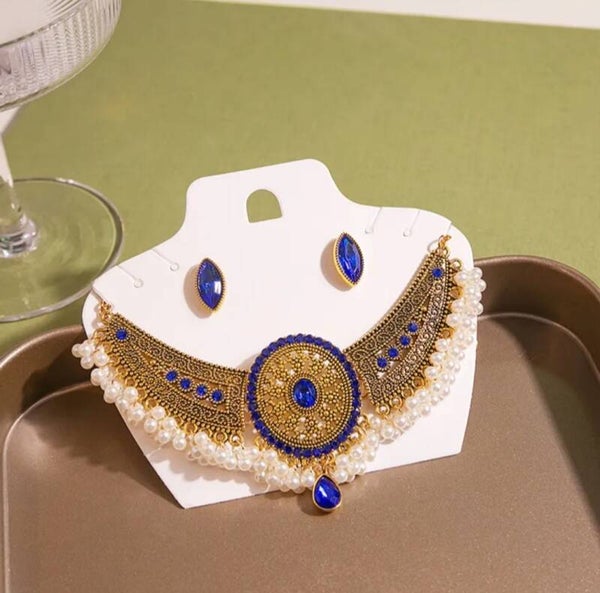 279 Set Aretes Collar Etnia Azul